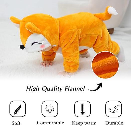 baby Lion Shape Zip Up Hooded Flannel Romper, Infant Jumpsuit