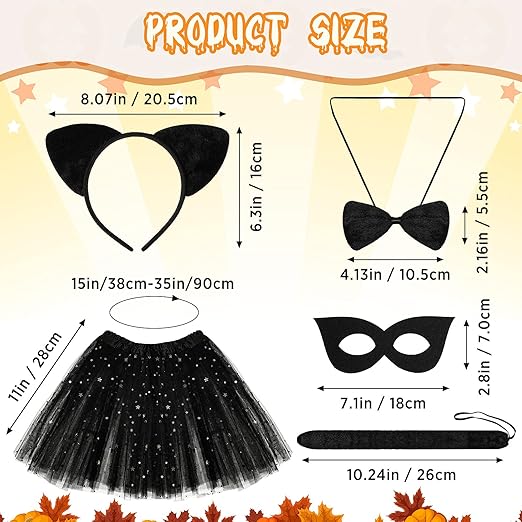 5 Pieces Black Cat Costume Set Cat Dress Up Costumes