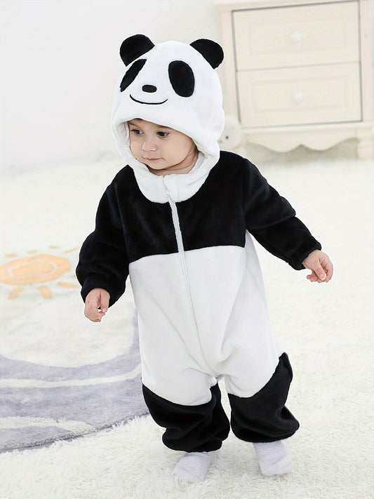 Baby Black & White Cute Panda Pattern Soft Outdoor Hooded Bodysuit With Zipper